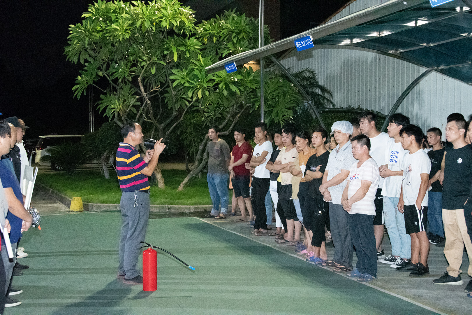 ▲隊伍整頓、看齊、核實人數,講解消防演習的培訓知識