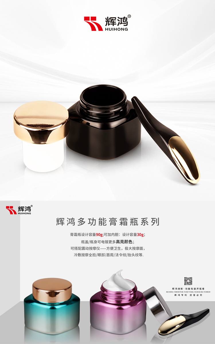 【工藝設計特點】:膏霜瓶設計容量90g,可加內膽:設計容量30g